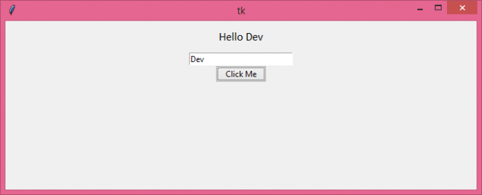 Running the above code will display a window that will contain an Entry widget, a label widget, and a button in a frame.
