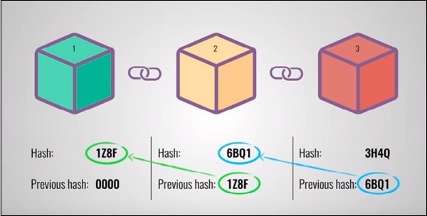 Each Block contains data, Hash value of the block (Which acts as the unique identification code for that particular block) and also the hash value of the previous block.