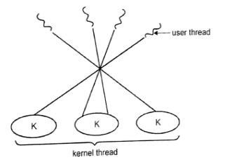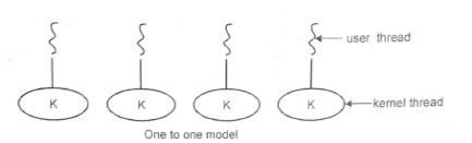 It multiplexes many user level threads to a smaller or equal number of kernel threads. The number of kernel threads may be specific to either a particular application. And many-to-one models allow the developer to create as many user threads and true concurrency is not gained because the kernel can schedule only one thread at a time.