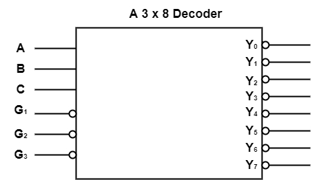 The 3 to 8 decoder is one that has 3 input lines and 8 (23) output lines. The functional block diagram of the 3 to 8 decoder is shown in Figure-4.