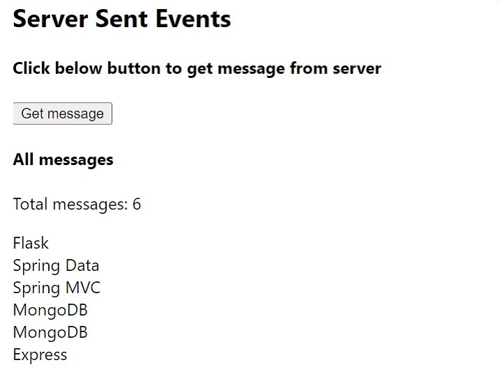 After that, when the user clicks the ?get the message' button, it will send a POST request to the ?message' endpoint with a particular message. The server receives a message and sends it back to the client via server-sent events.